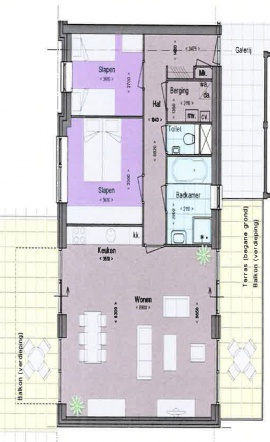 Van het type B bevindt zich er 1 appartement op de begane grond en 1 op de tweede verdieping. Beide appartementen zijn geschikt voor 4 tot 5 personen.Indeling: ruime entree met gardarobe, twee ruime slaapkamers, inpandige afsluitbare berging, gescheiden toilet, luxueus afgewerkte badkamer met ligbad, vaste wastafel en een separate douchcabine.